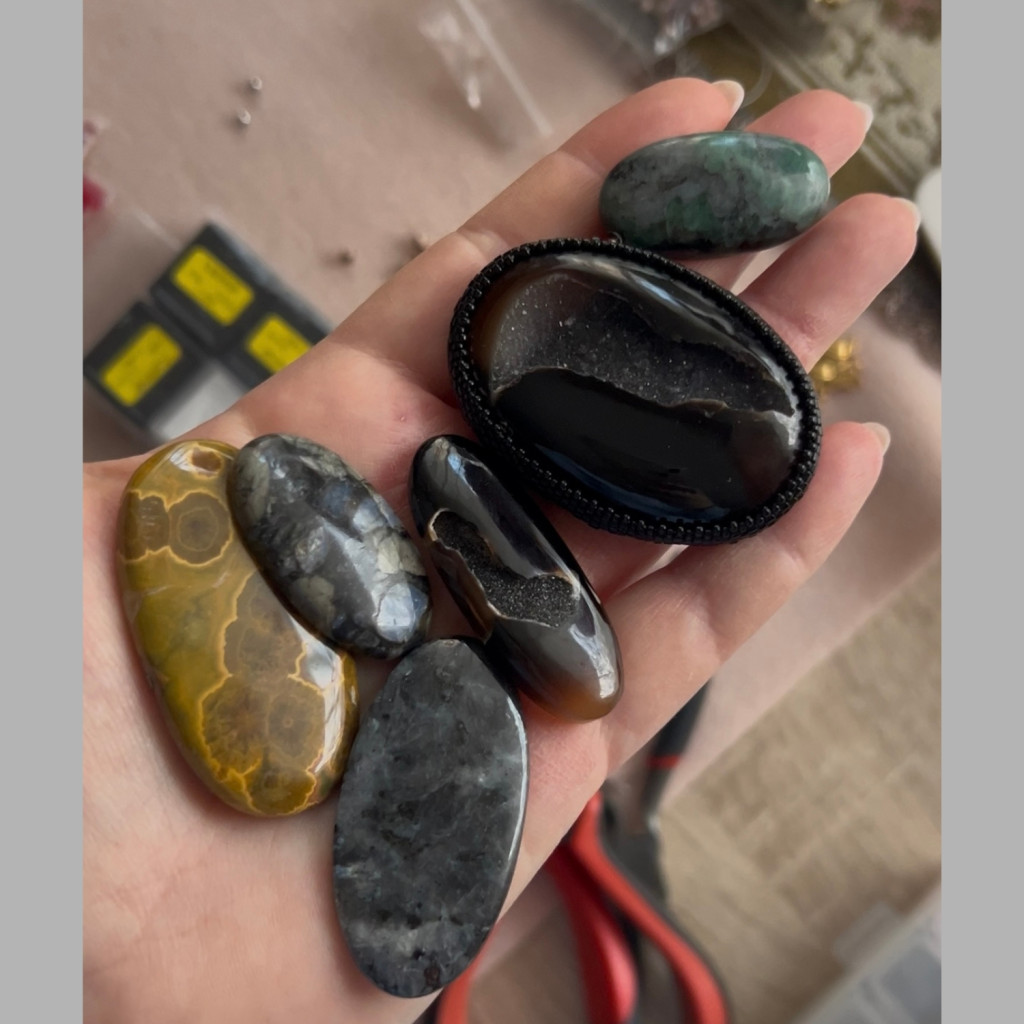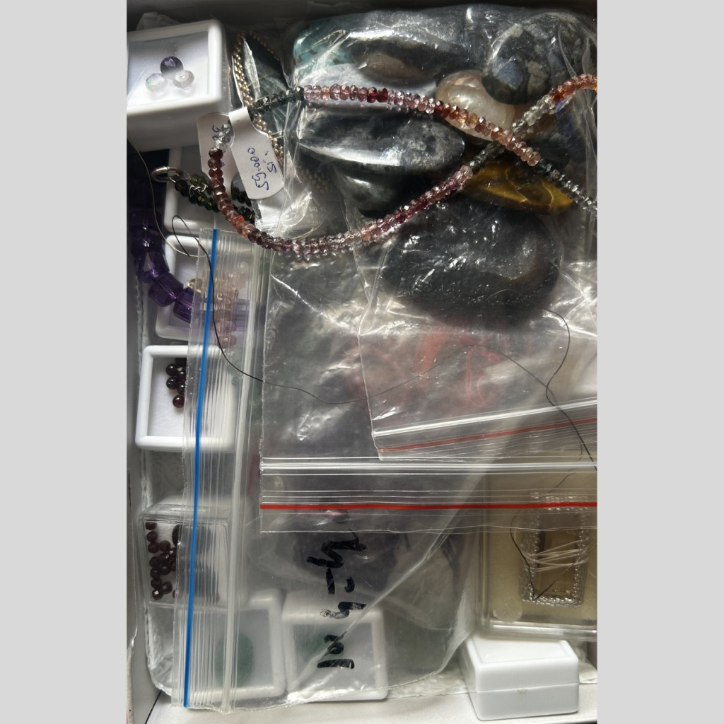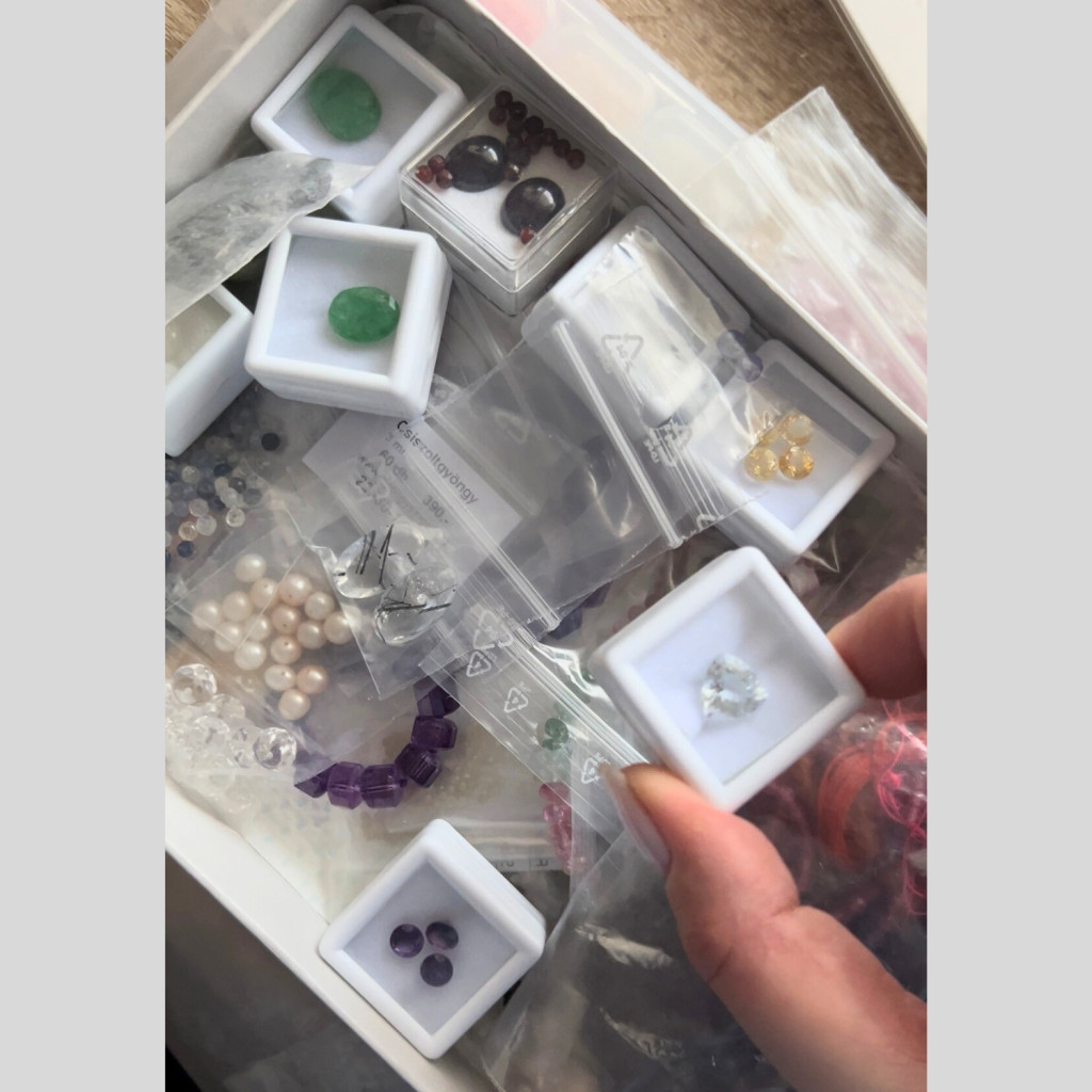 berill nyakék, spinell nyakék -és karkötő, gyöngyök, zafírok, nyers gyémántok, opálok, gránátok, smaragdok, fazettált kvarcok, akvamarin,