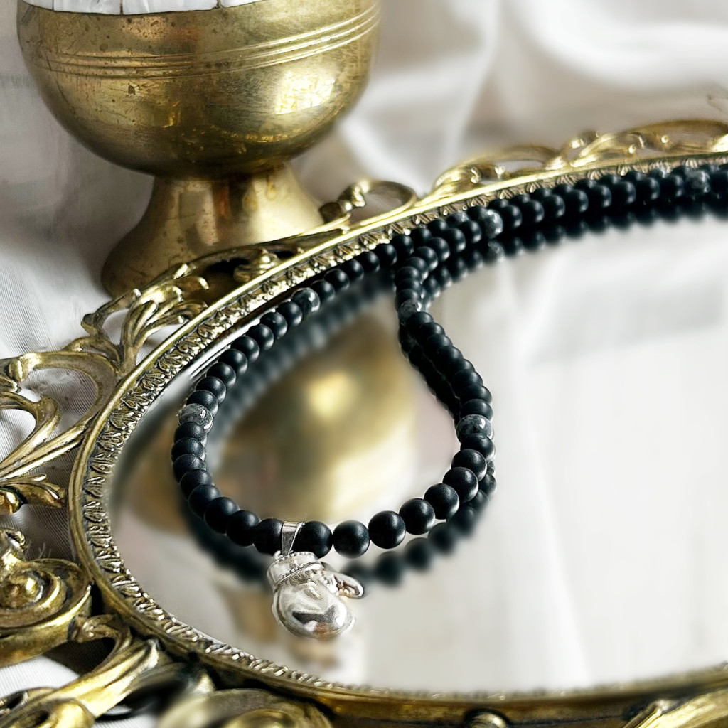 925 Ezüst Box kesztyű medál Ónix ásvánnyal és larvikittel.