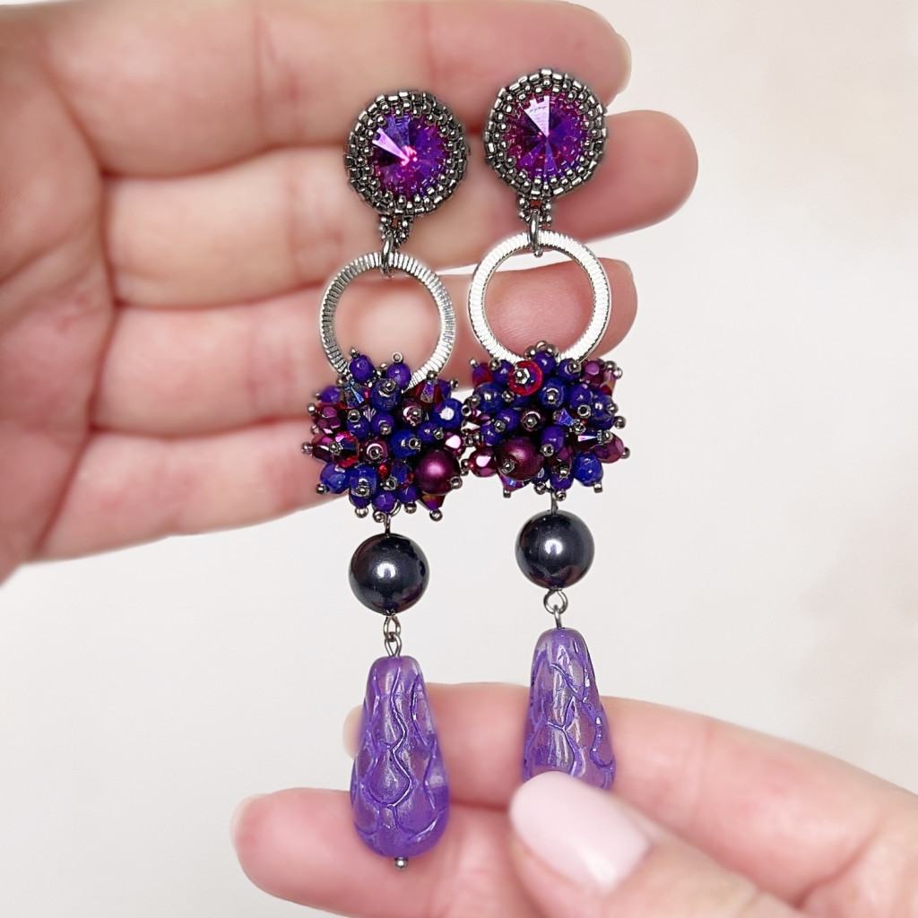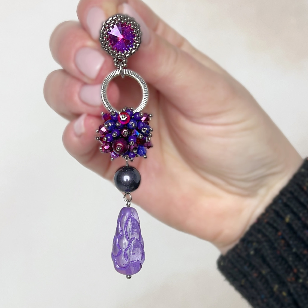 Swarovski kristályból készült C H L O É fülbevaló kézzel festett cseh üveggyöngy cseppel, fazettált és- japán üveggyöngyökkel.