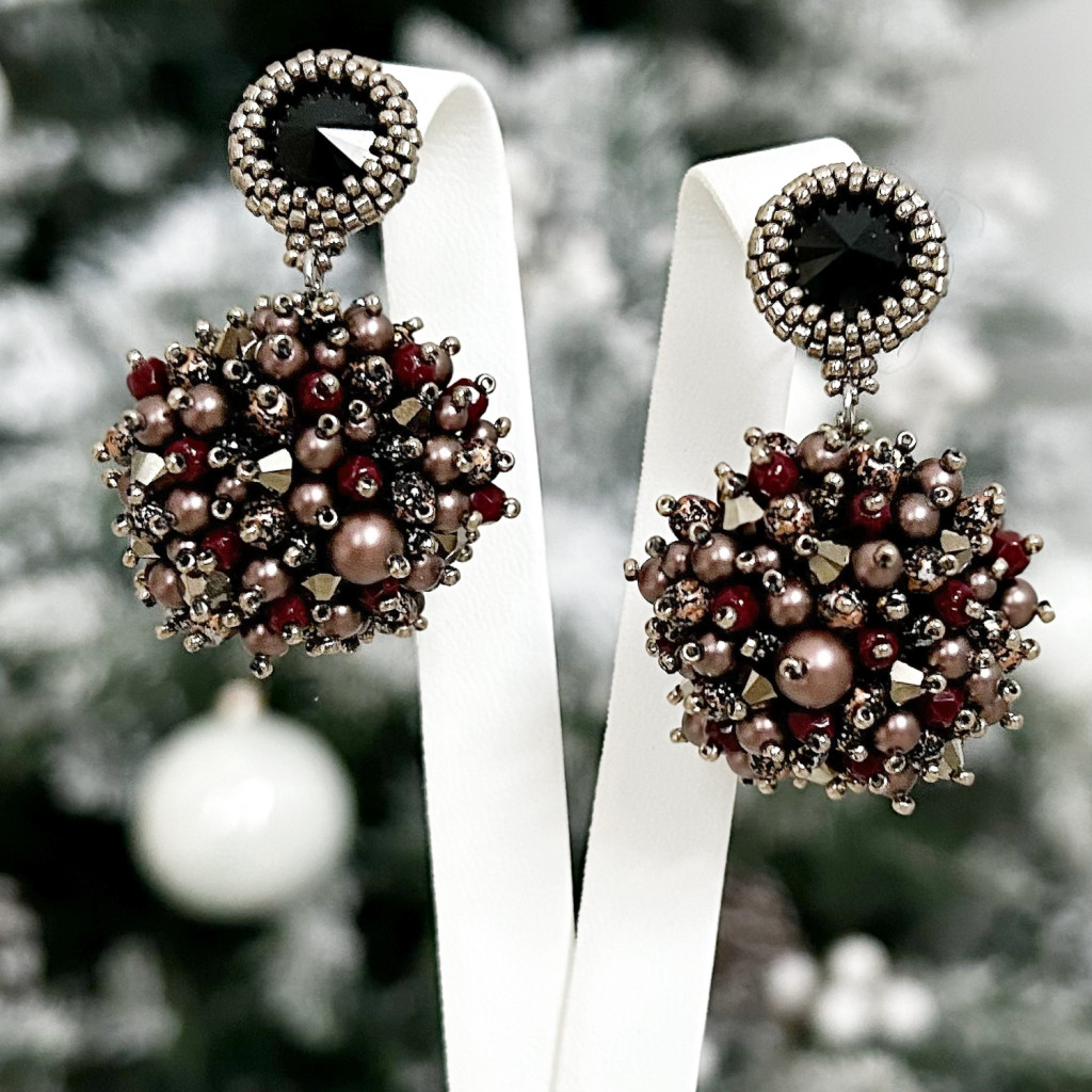 Ősz színekből álló karkötő kígyómintás cseh üveggyönggyel, bordó Swarovski imitation Pearl gyönggyel, japán üveggyöngy kíséretében.
