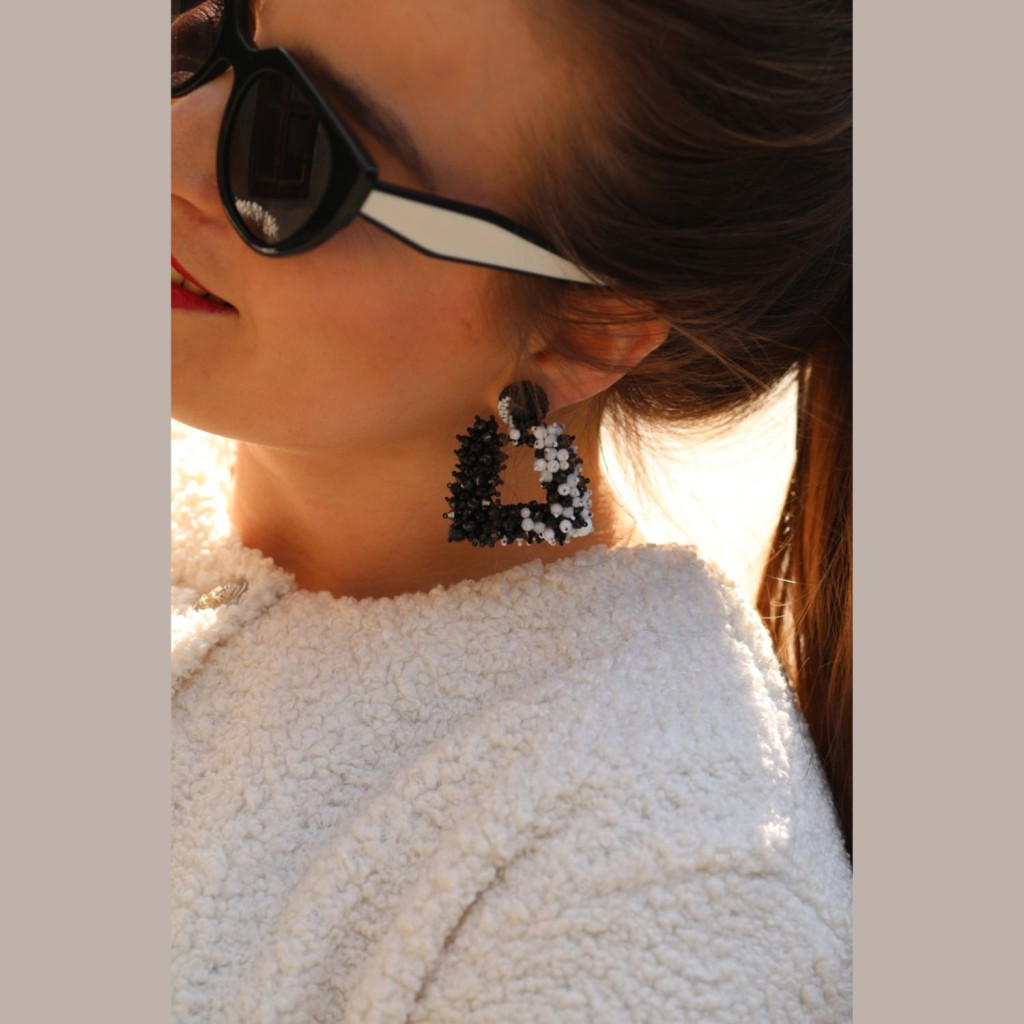 Ez az első fekete-fehér Daisy fülbevaló, a Swarovski hiánya miatt pedig az utolsó is -hiszen az adja ezt a matt, mégis csillogó hatást.