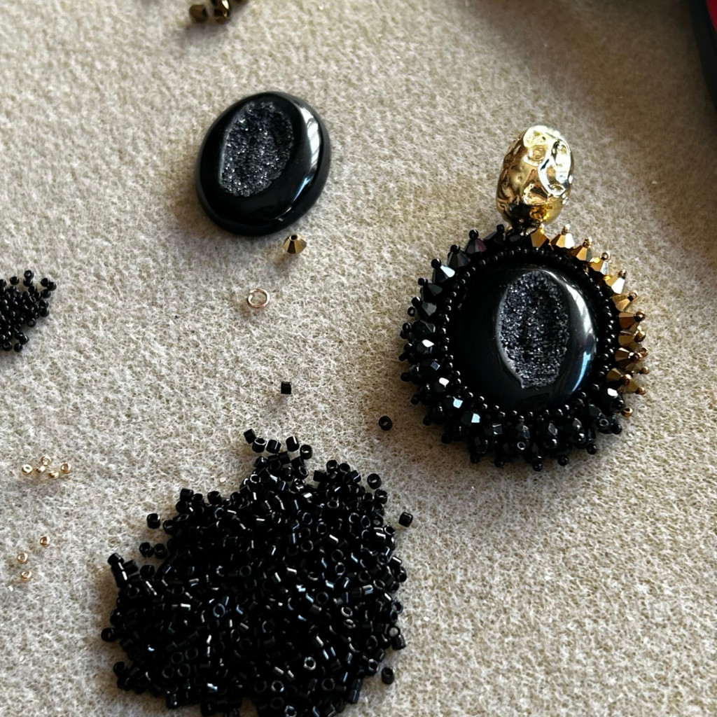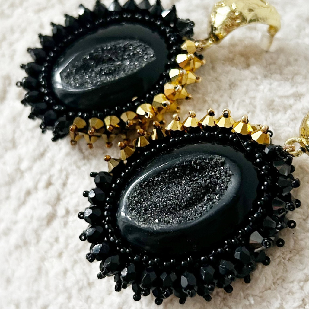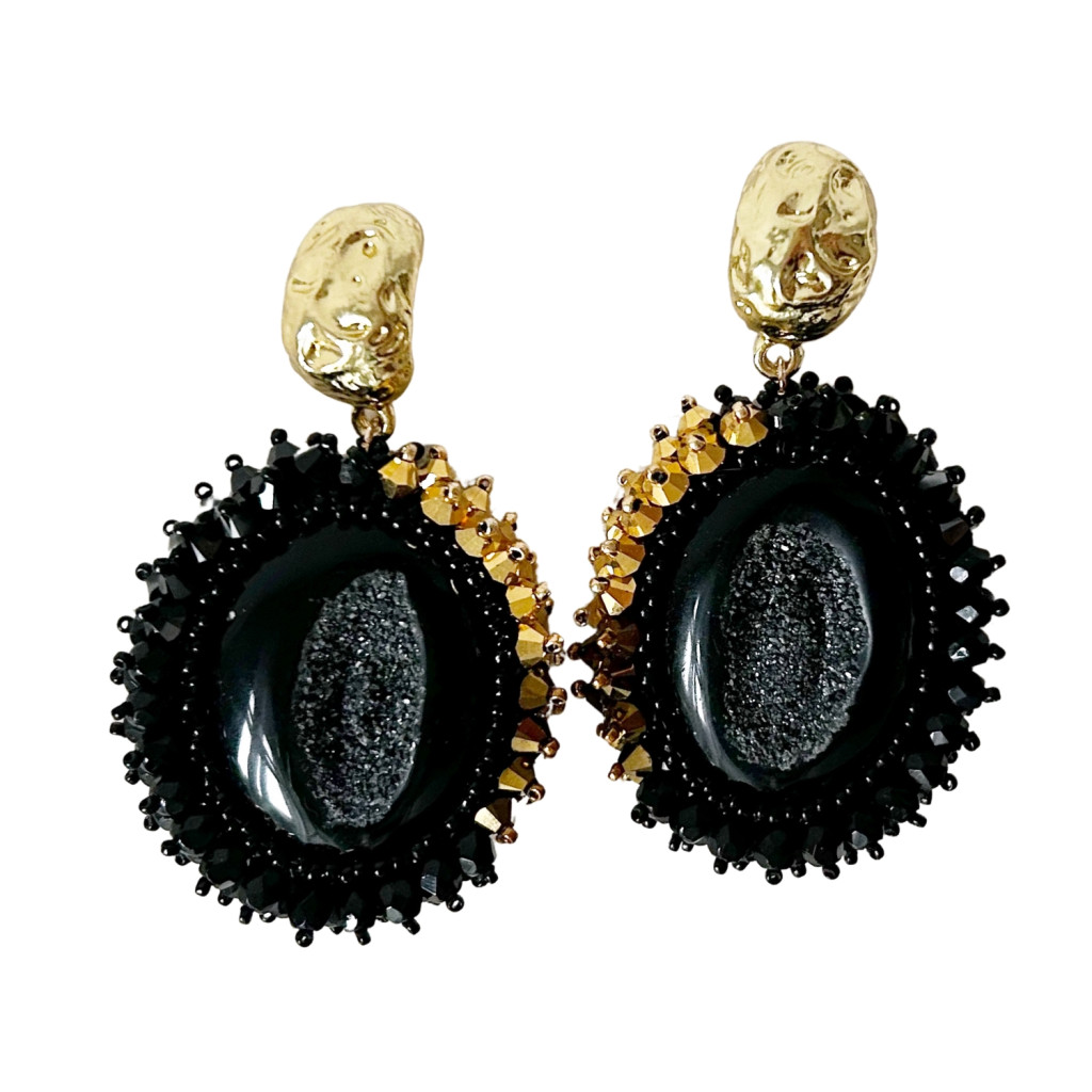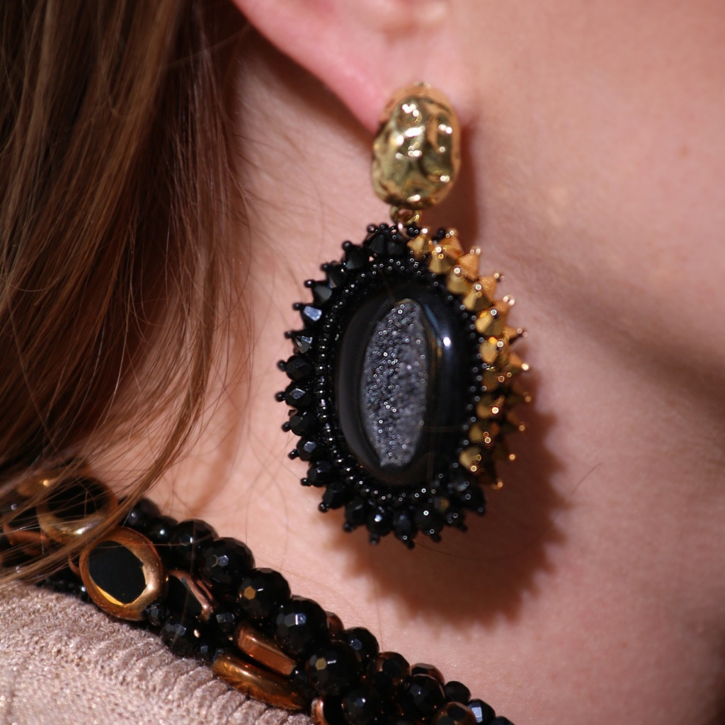 Drúza achát fülbevaló Swarovski kristállyal