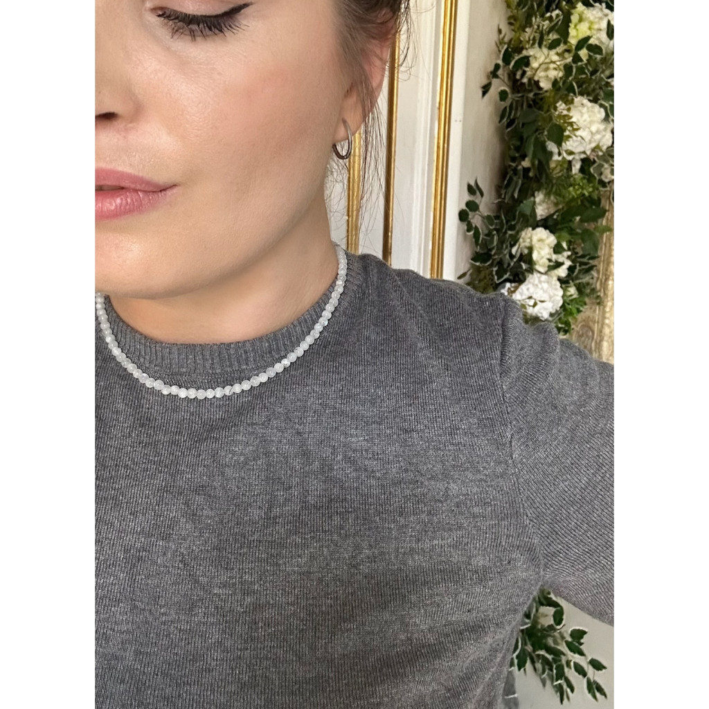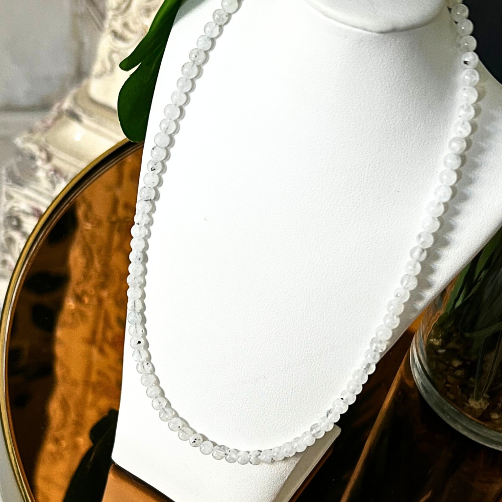 A holdkő a nőiesség köve. 6 mm-es golyókból készült lánc, orvosi alkatrészekkel.