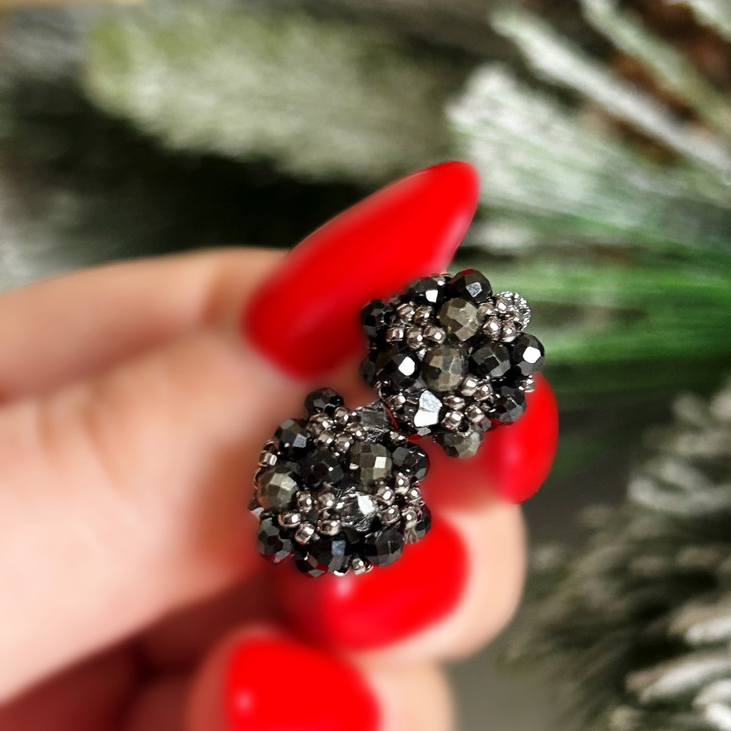 Szintetikus spinellből ( ezért a varázslatos csillogás ), pirit -és Swarovski kristályból készült gyöngypötty orvosi acél alappal.