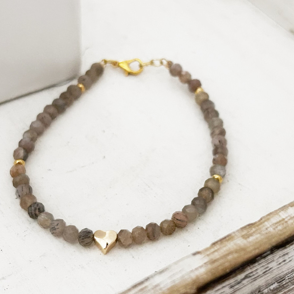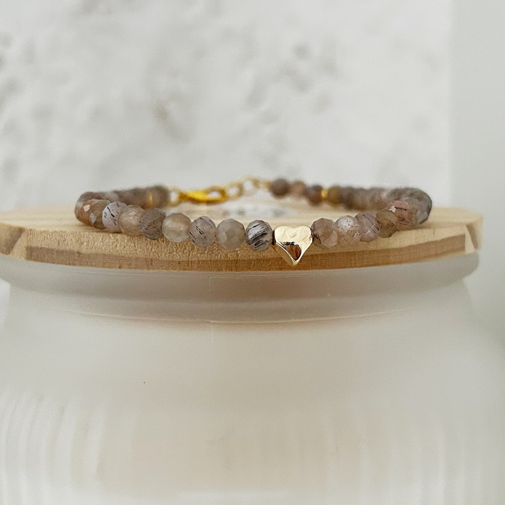4 mm-es fazettált labradorit ásványból készült minimál karkötő acél köztessel