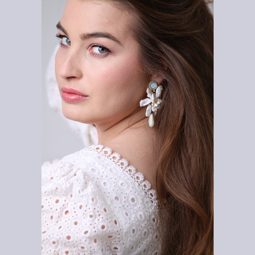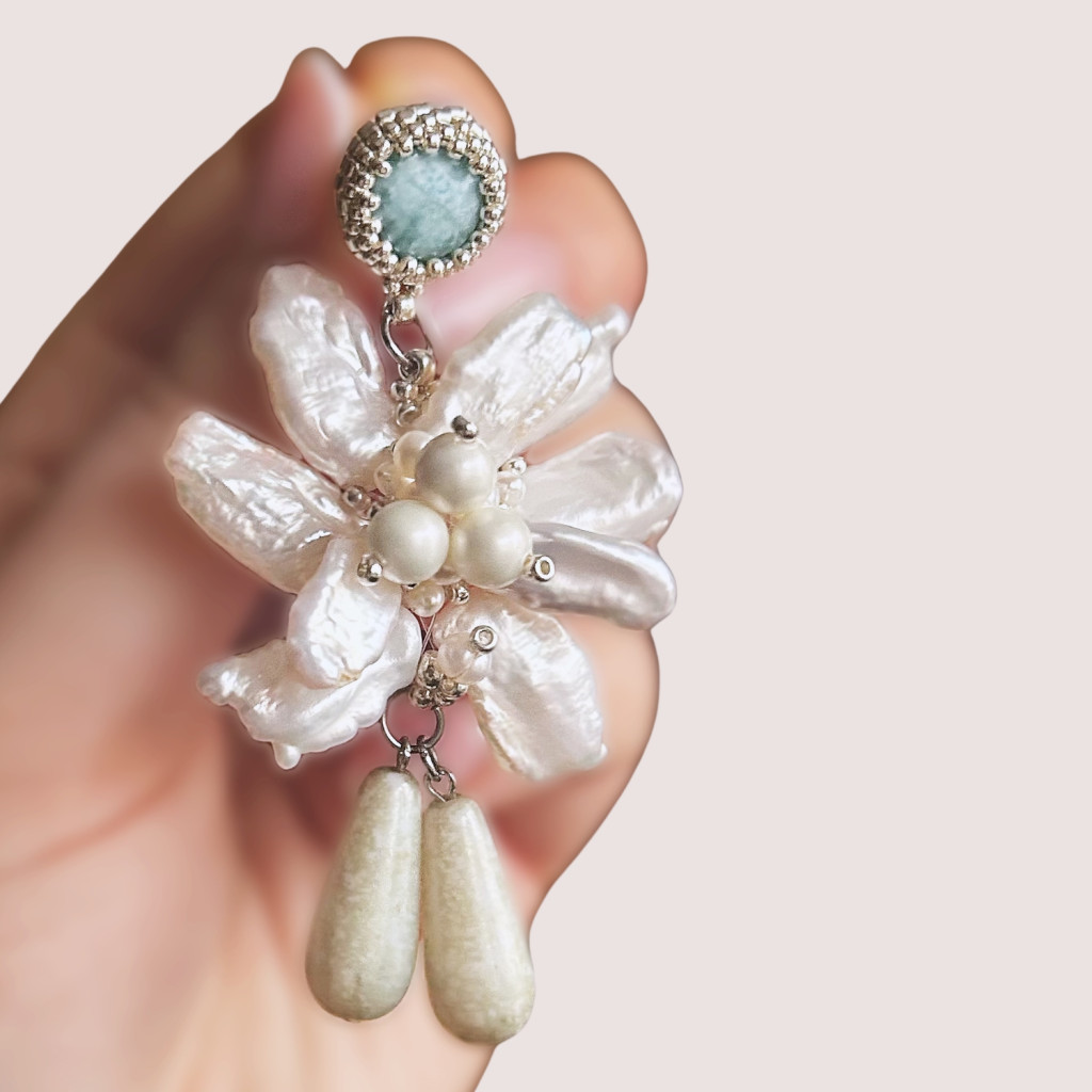 Tenyésztett gyöngyből készült Orchidea Larimarral