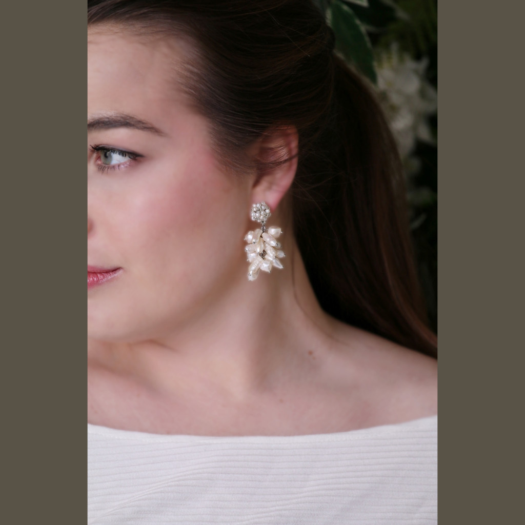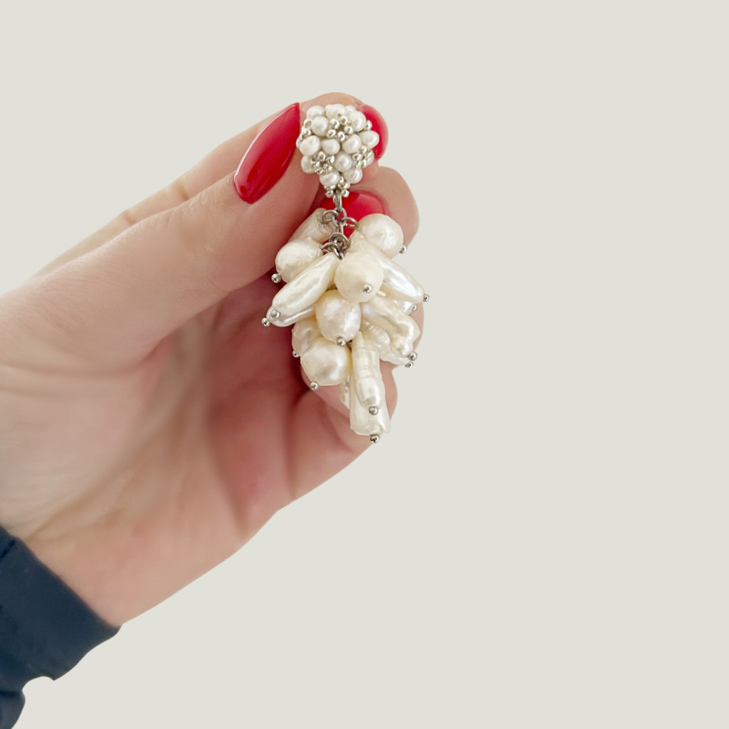 A barokk stílusú gyöngyök hosszúkás és gömb alakú váltakozása gyönyörű fürtös hatást kelt.