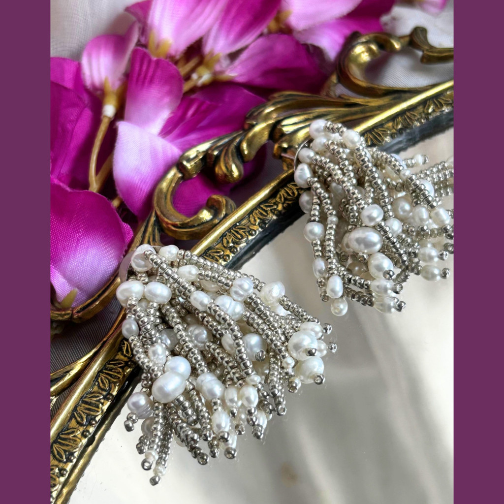 Tenyésztett gyöngyből készült fülbevaló japán üveggyönggyel